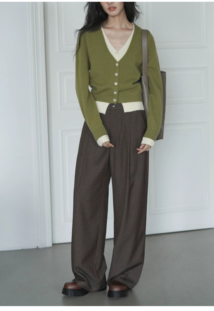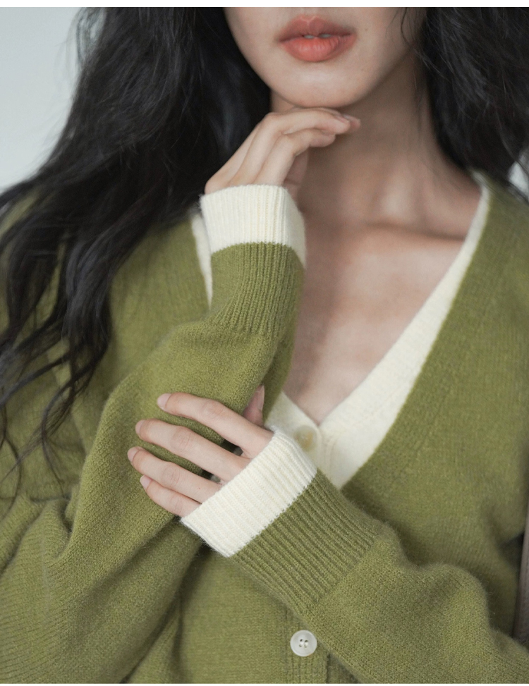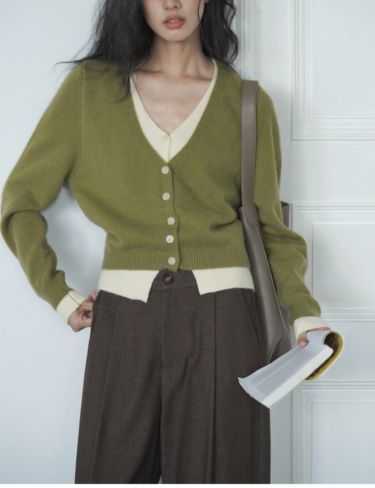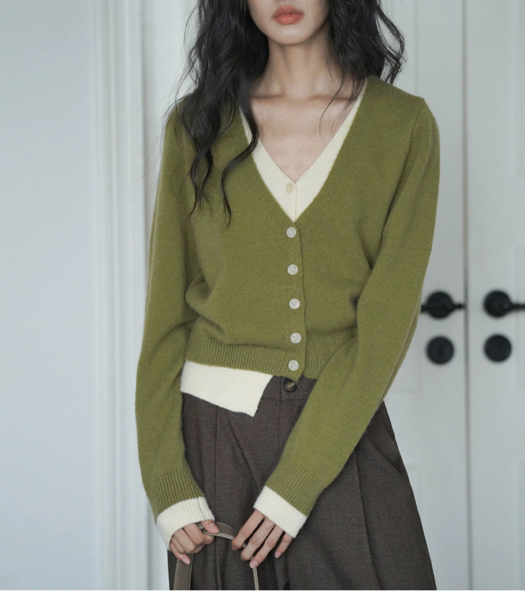 เสื้อคาร์ดิแกนถักสองชิ้นปลอมสีเขียว